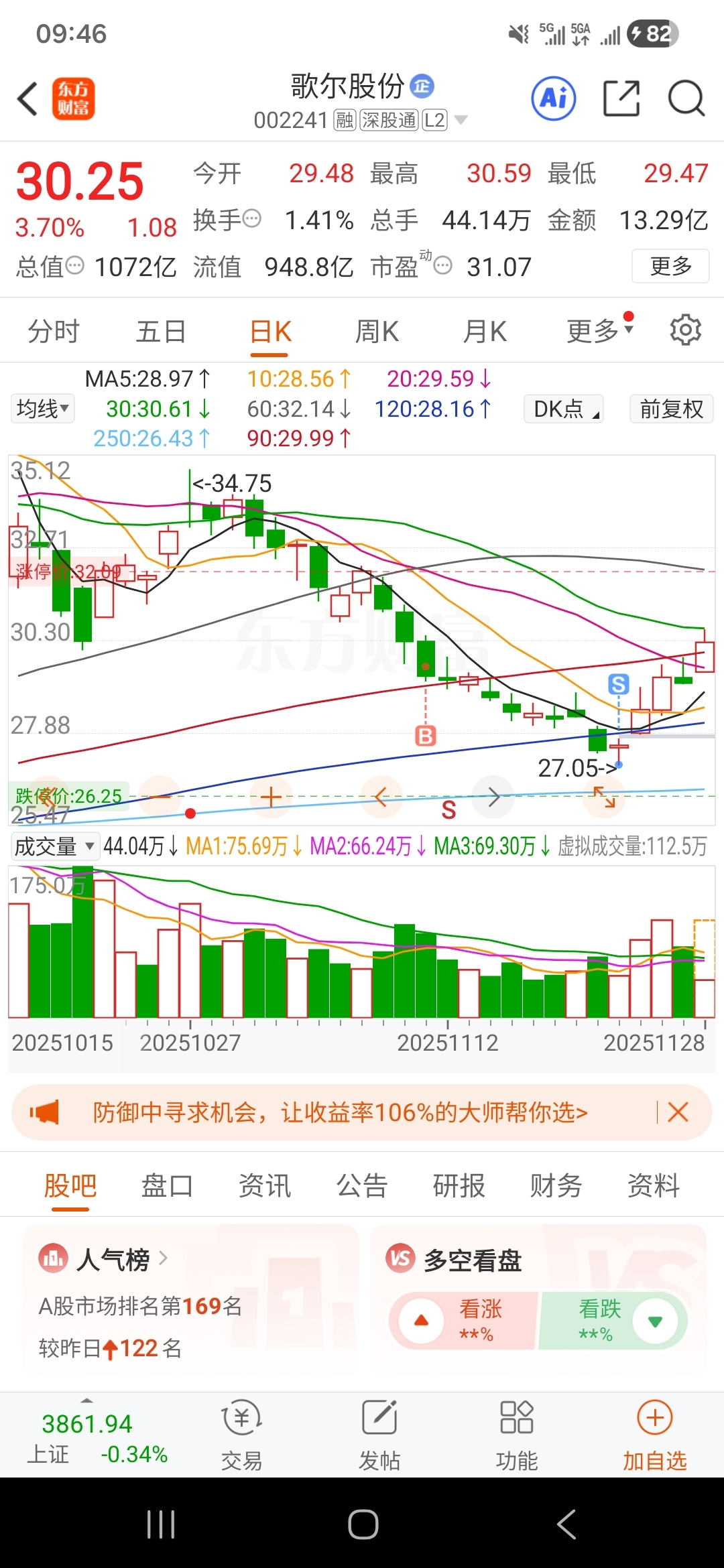 $歌尔股份(SZ002241)$ 大家不得给我磕一个?
