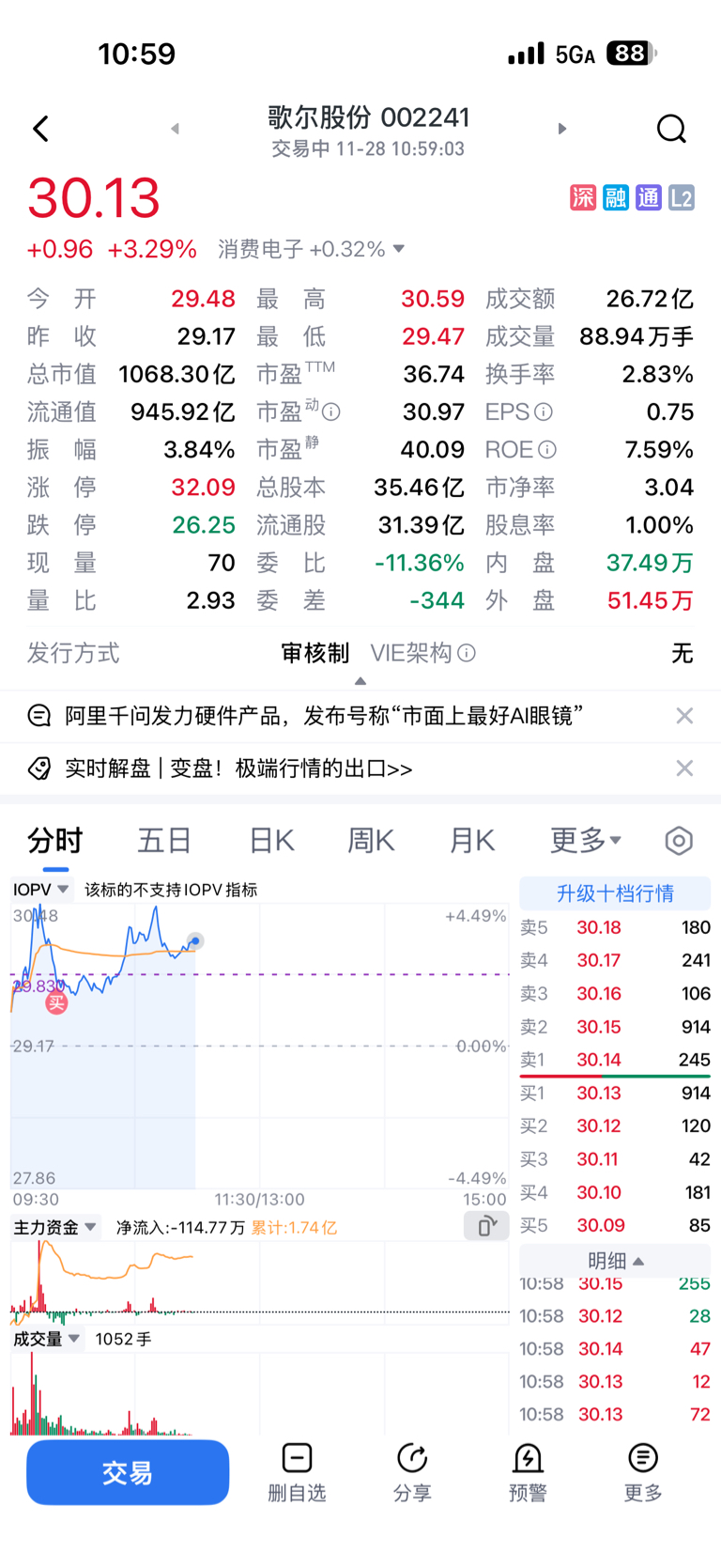 $歌尔股份(SZ002241)$ 买 买的就是歌尔 观察三天了
