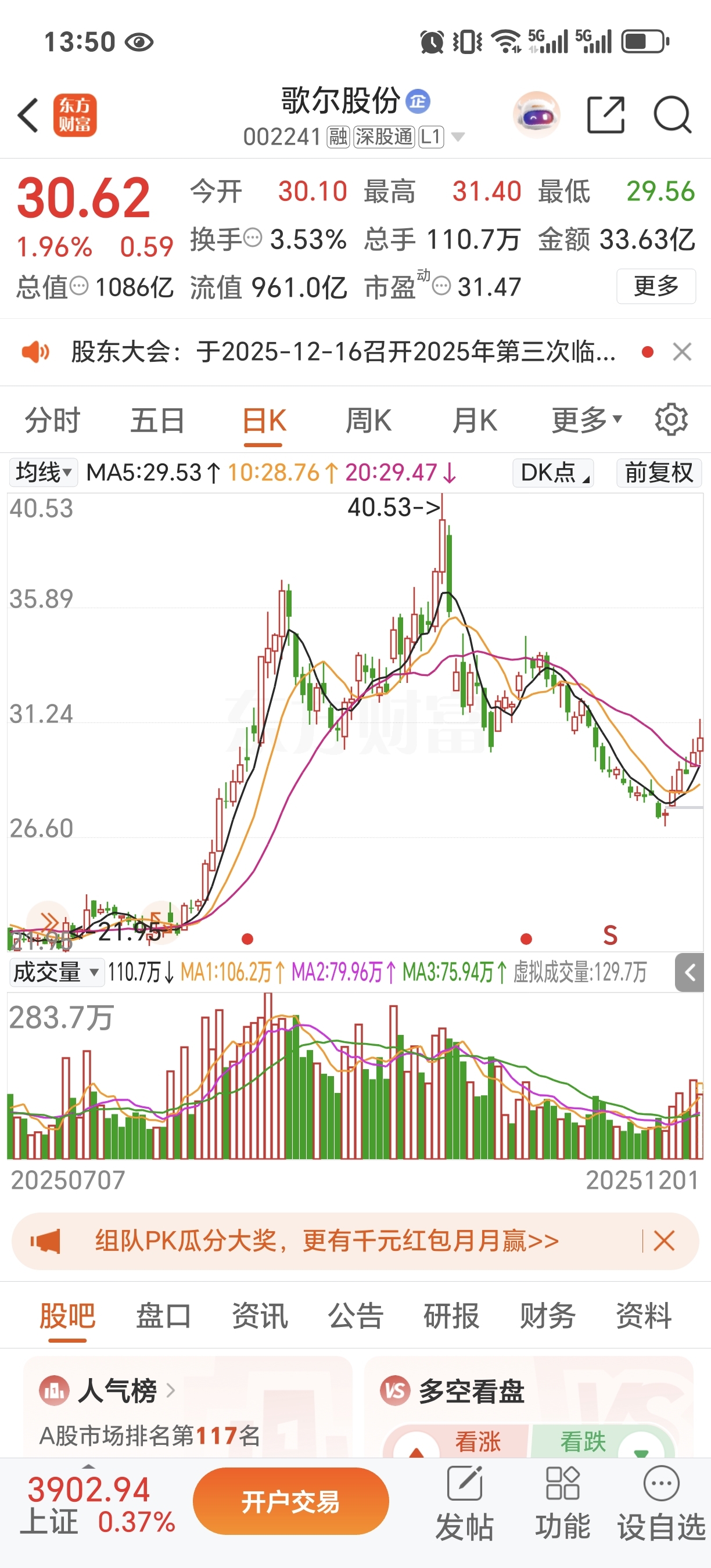 $歌尔股份(SZ002241)$ 加仓,判断是在吸筹
