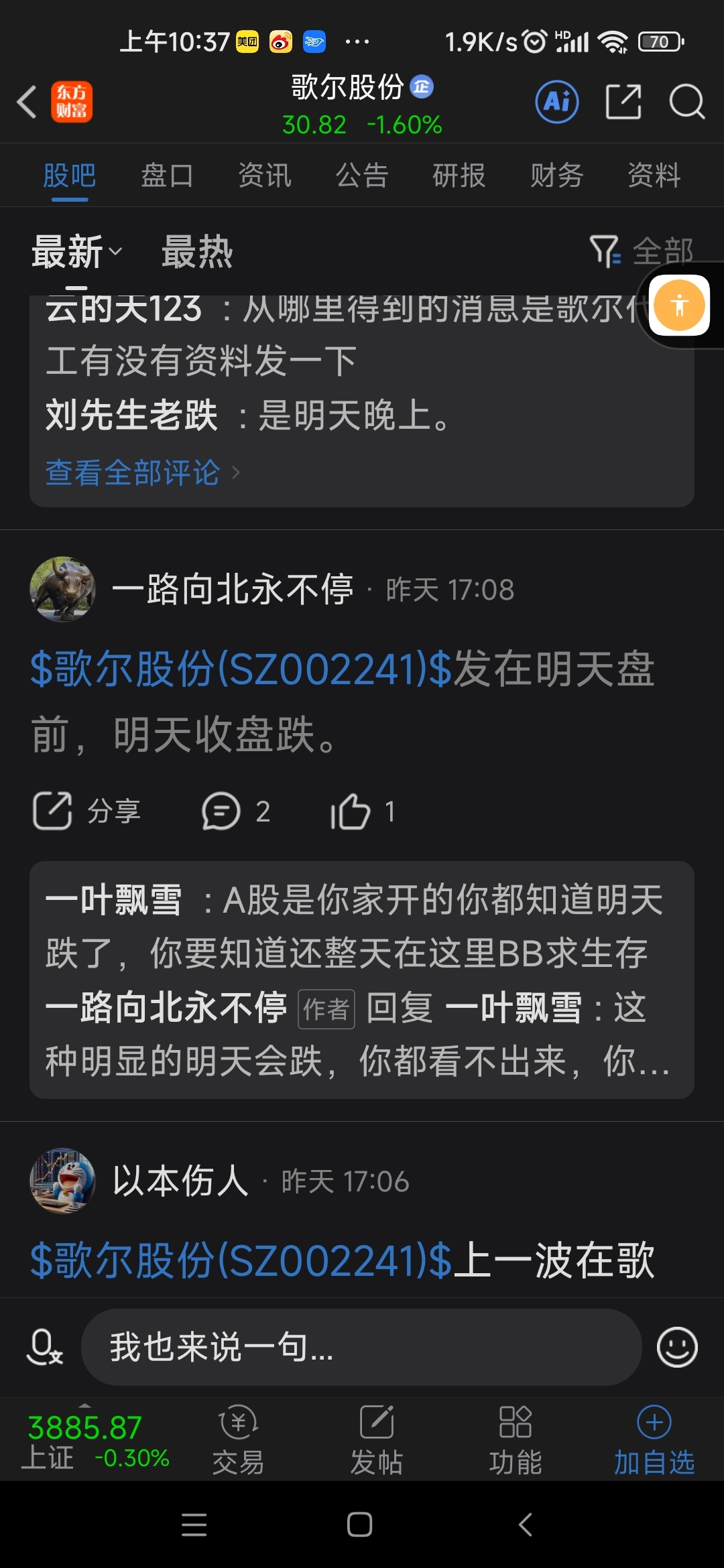 $歌尔股份(SZ002241)$ 回我贴的还瞎BB不?有时间整天在股吧癔想瞎BB,拿时间出来复复盘增加点知识不好吗?丢人现眼的货!
