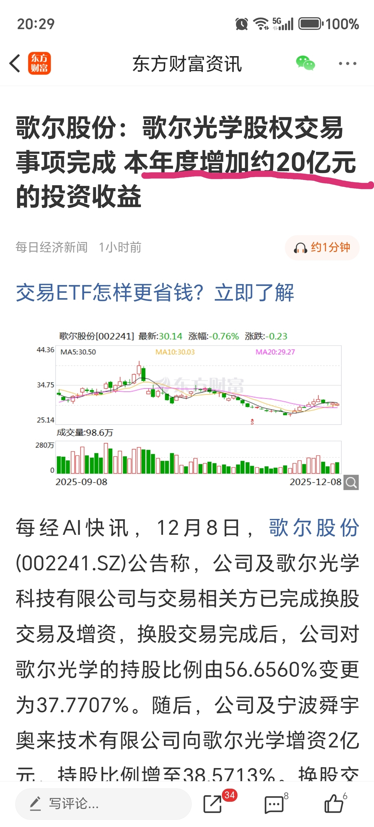 $歌尔股份(SZ002241)$ 净利润增加20亿,那年报岂不是翻倍增长了!股价不奢望翻倍你来个涨停就行,我格局小,就看你格局了
