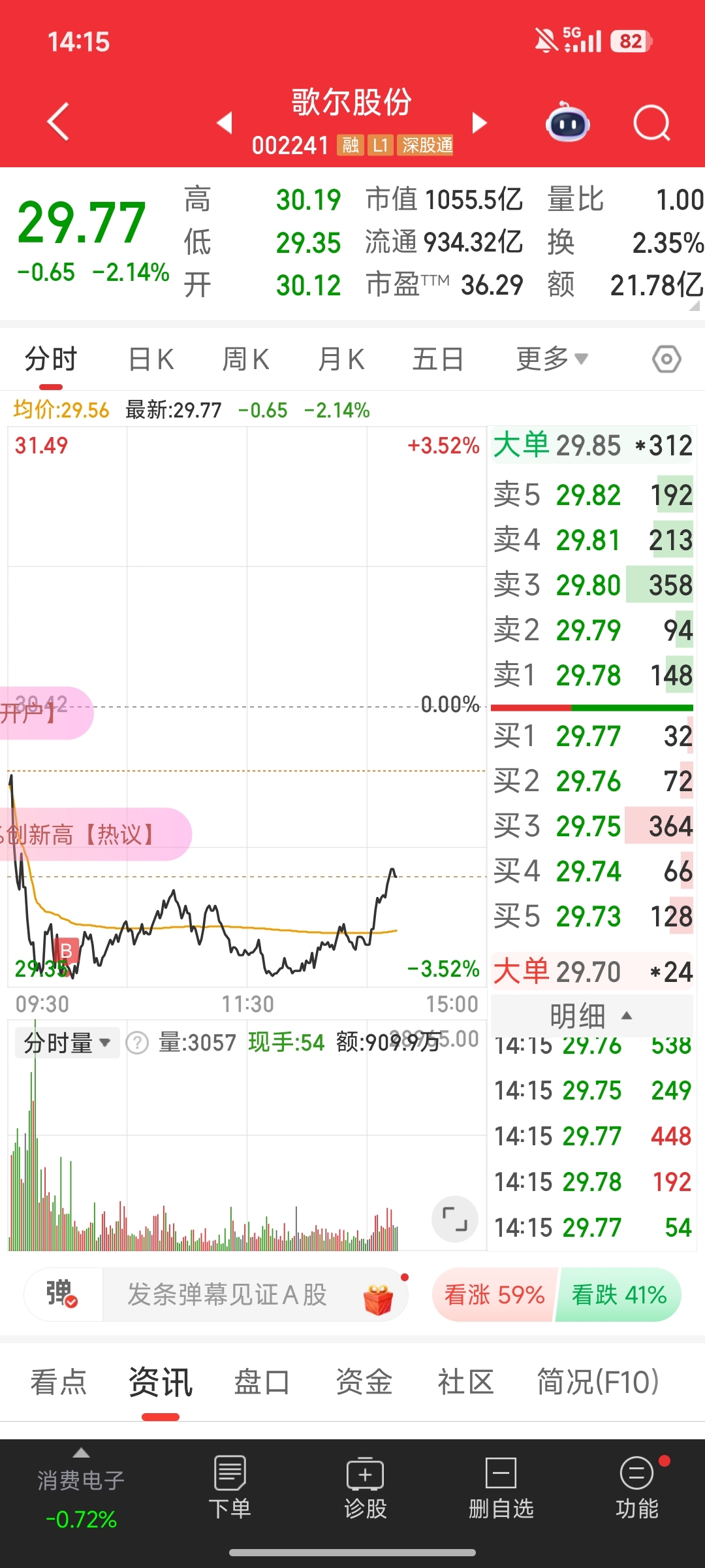 $歌尔股份(SZ002241)$ 主力卖点力气,使劲砸