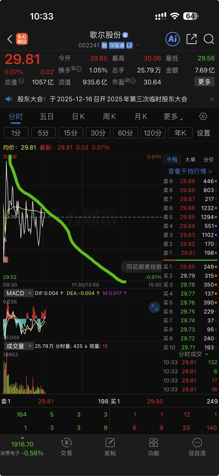 $歌尔股份(SZ002241)$ 看来还有的绿