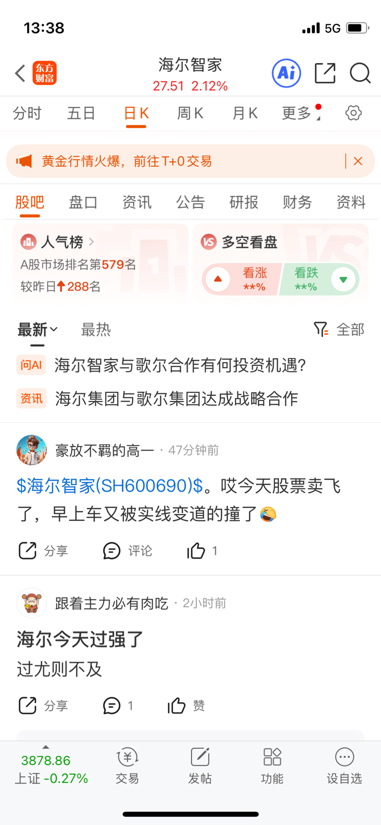 $歌尔股份(SZ002241)$ 海尔涨两个点你跌两个点什么意思