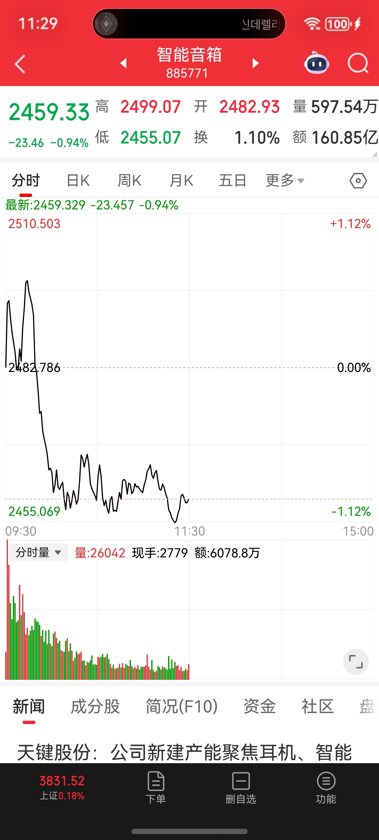 和这两个细分板块走势一模一样。但是其他消费电子都是红盘。