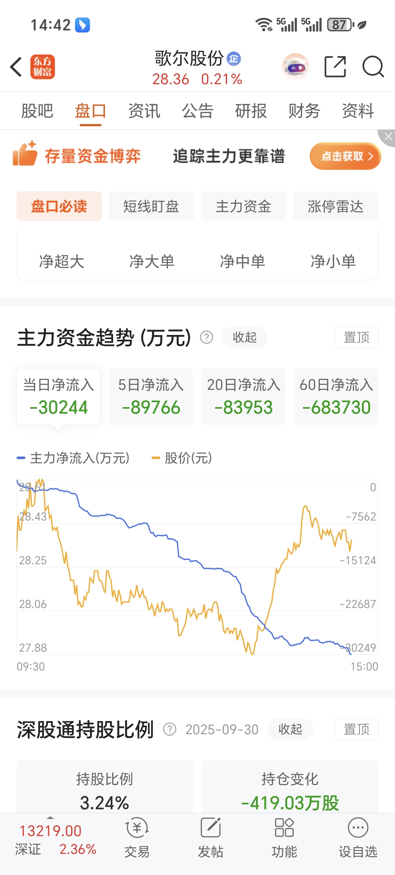$歌尔股份(SZ002241)$ 主力一毛都不进,全是出货啊!