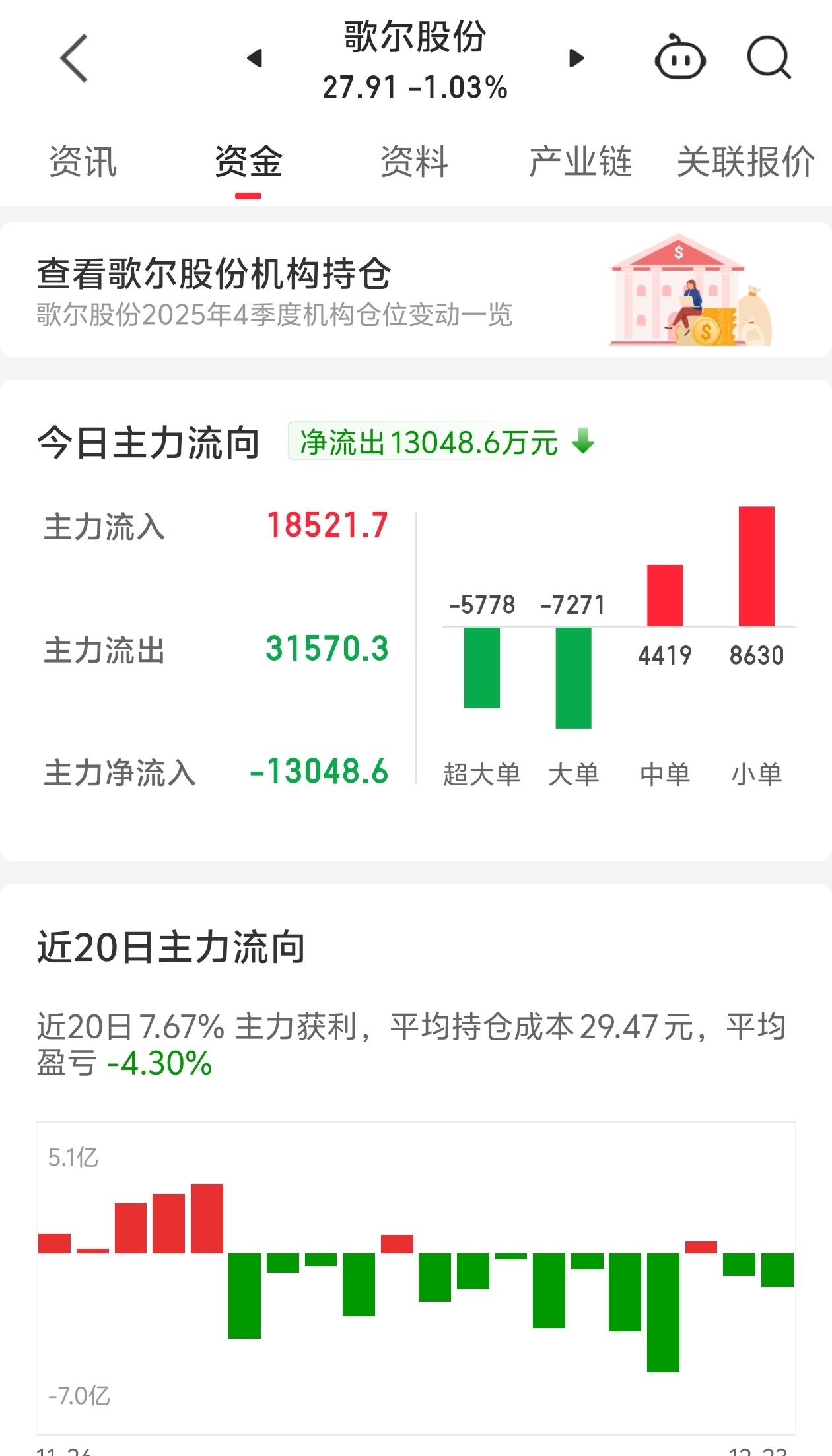 $歌尔股份(SZ002241)$ 不要在主力撤退的时候接盘