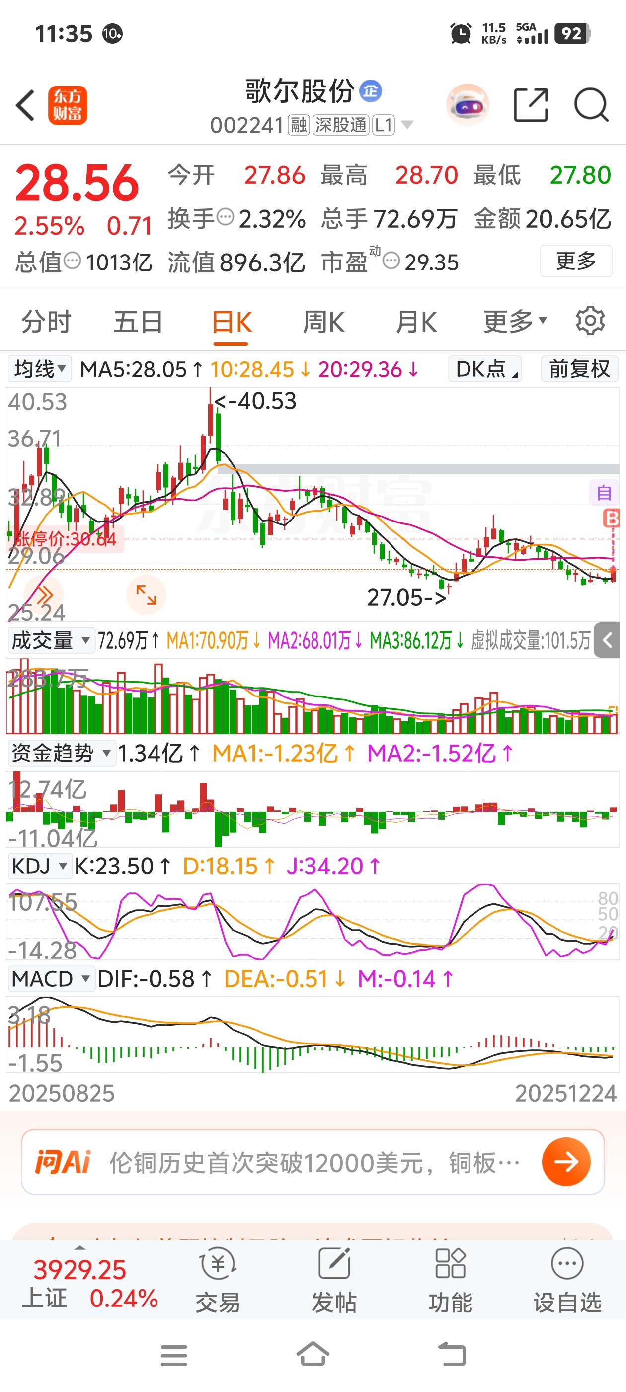 今天进仓歌尔股份,守些天希望能有利润
