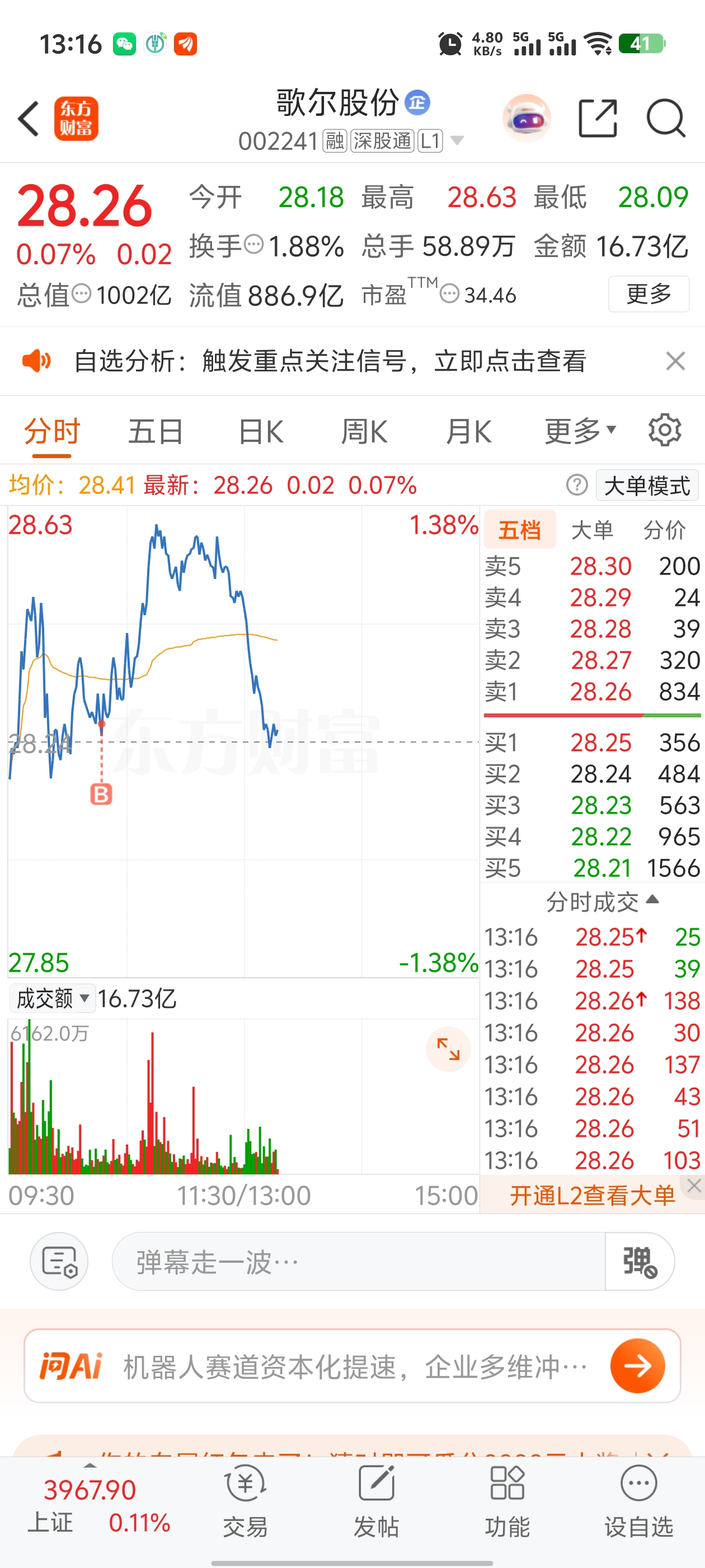 $歌尔股份(SZ002241)$ 让我赚一分钱吧,明天放我出去可好,我只赚一分钱