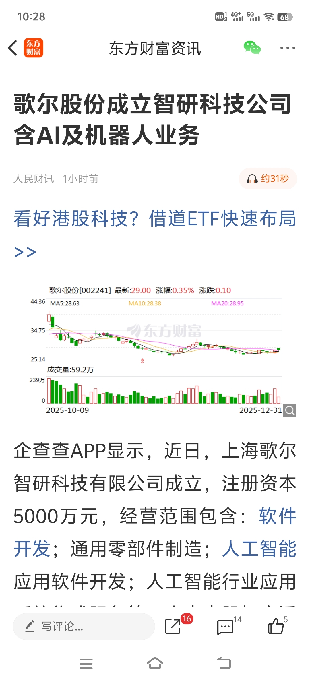 $歌尔股份(SZ002241)$ 研究机器人啦?