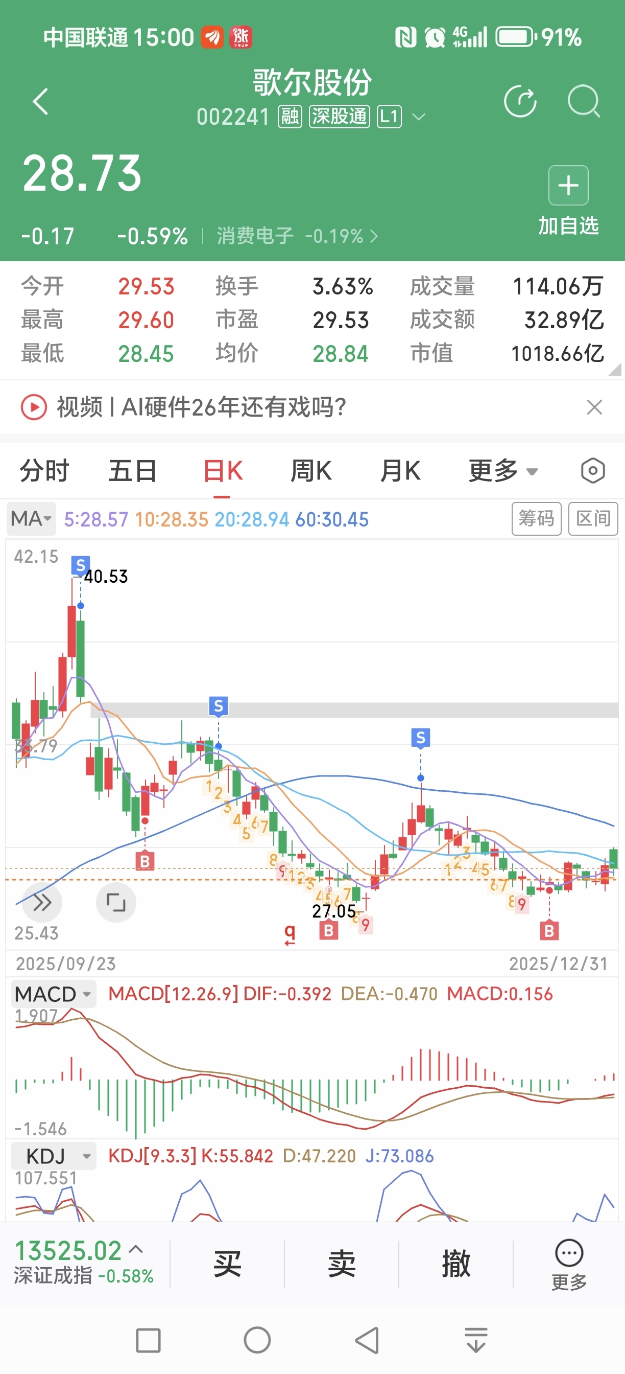 歌尔这个位置上下非常忐忑目前仍持仓中……。今天操作了一只债,先过好元旦,再考虑下