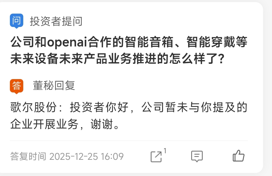 $歌尔股份(SZ002241)$ 这是实锤了,还一个个的yy呢,还有人说暂时没有,以后会有,都这么喜欢做梦那我也做一个,以后我会收购open AI!