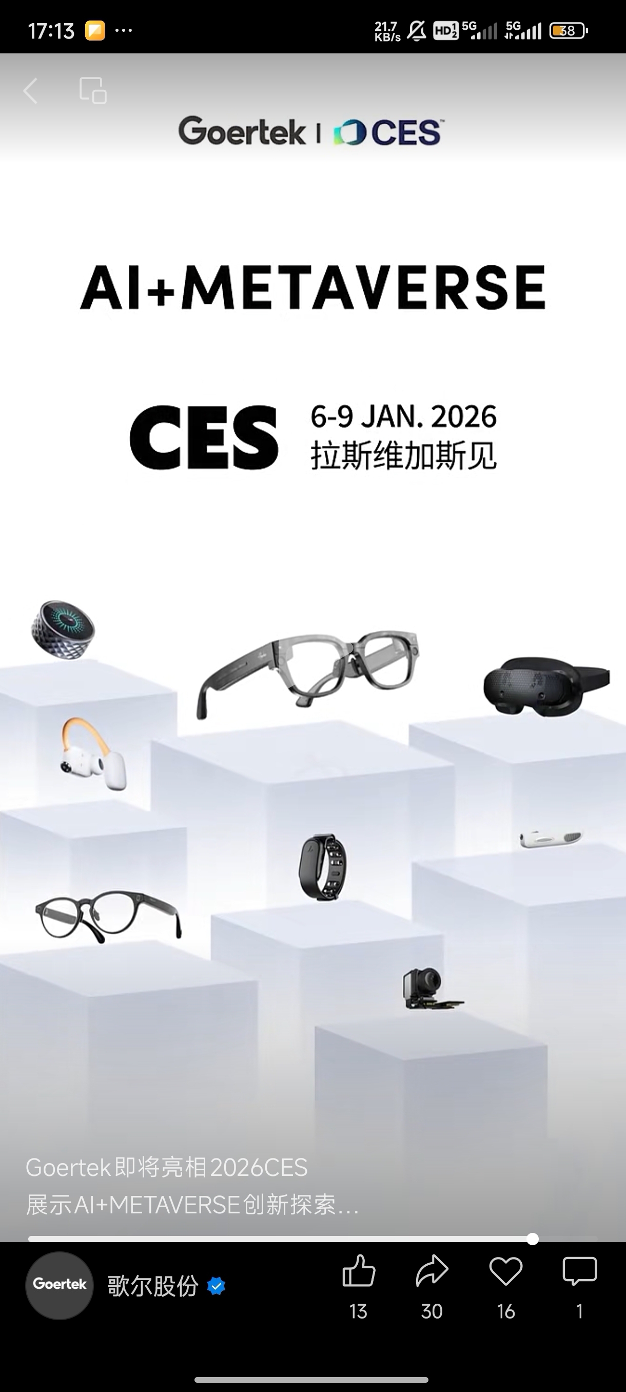 $歌尔股份(SZ002241)$ 歌尔股份AI智能穿戴,最近一直看着他又不让涨也不让跌,公司盈利也不错我已经满仓了,加上2026年AI眼镜量产,看好他我觉得它比机器人更加能够贴近我们每个人的生活等它量产了我也买个咨询过了1600加特殊镜片800,合计2400
