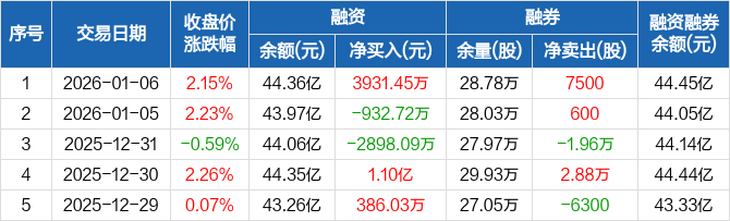 歌尔股份:融资余额44.36亿元,创近一年新高(01-06)
