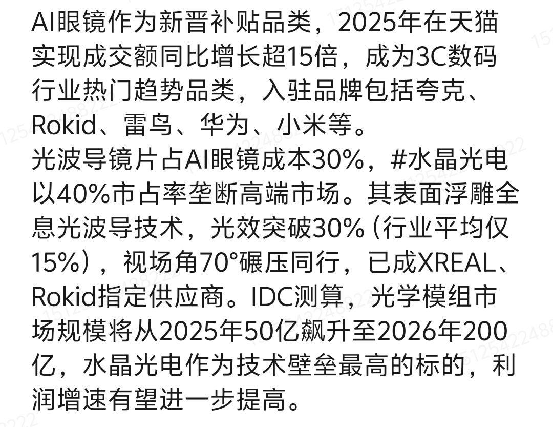 $歌尔股份(SZ002241)$ 天猫的智能眼镜品类销售都同比增长15倍了,你还在怀疑这眼镜没市场……还在想代工是破玩意……好像谁都做一样……