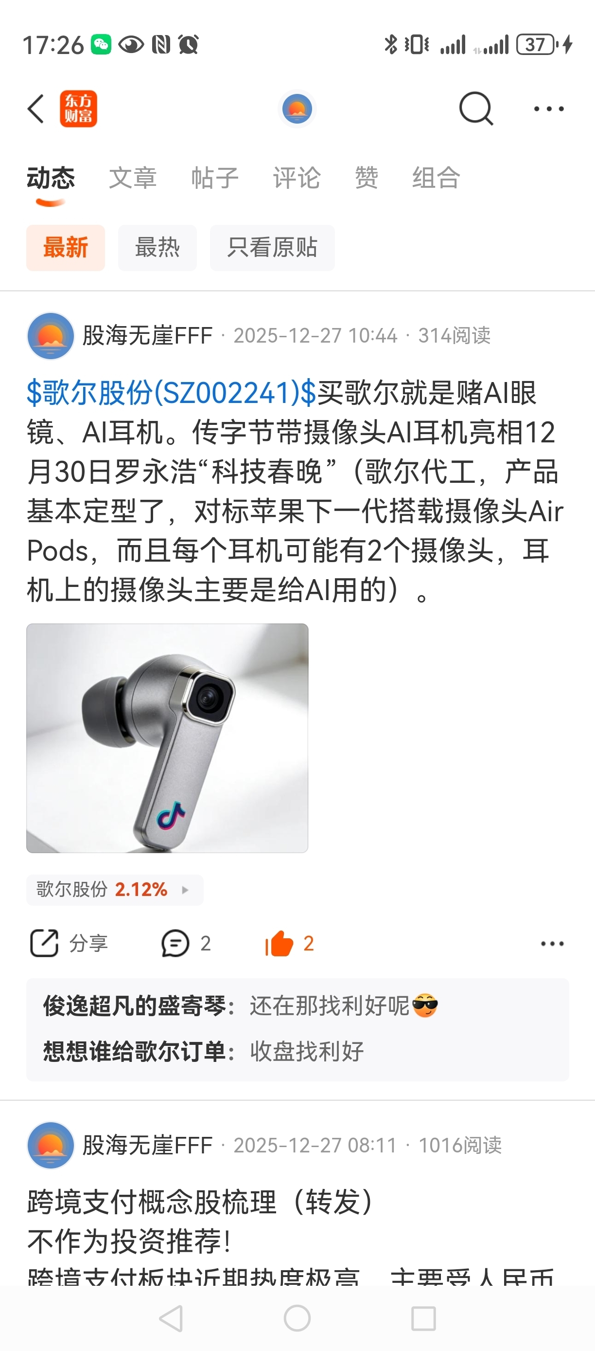 $歌尔股份(SZ002241)$ 是这样的耳机吧
