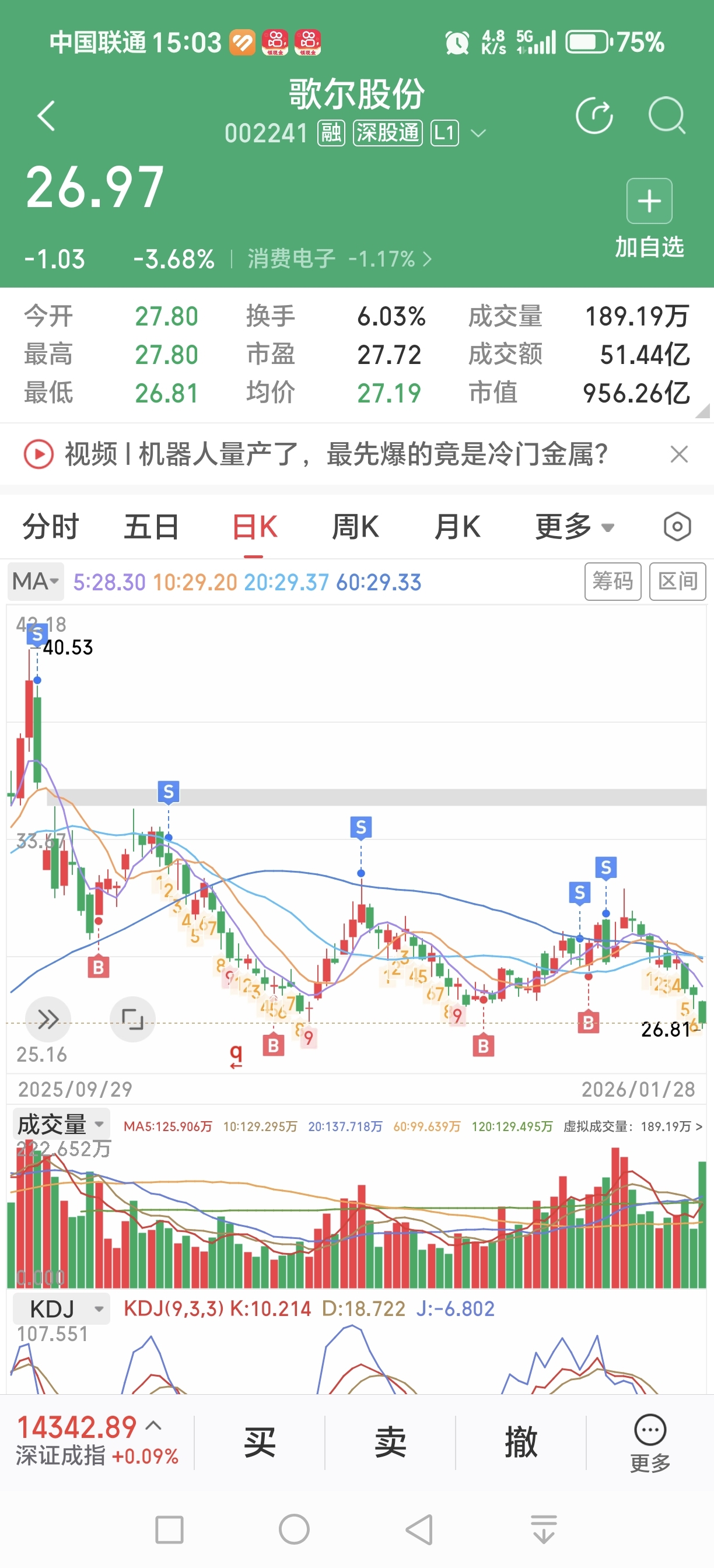 $歌尔股份(SZ002241)$ 今日成交额51亿,放量下跌