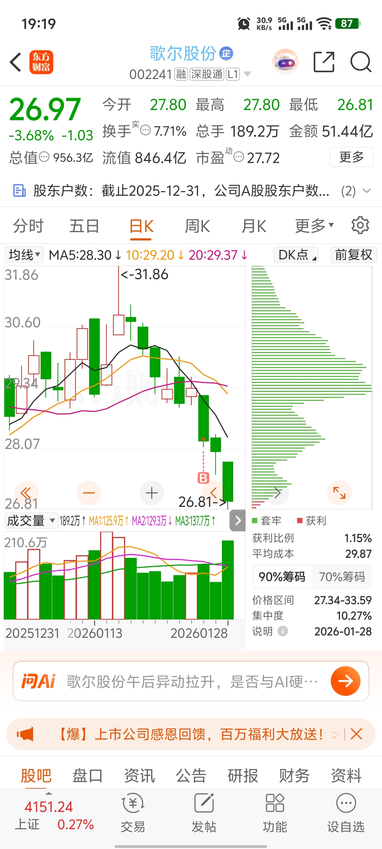 $歌尔股份(SZ002241)$ 为啥还不出业绩公告,套我四个多点,死也让我死的明白吧