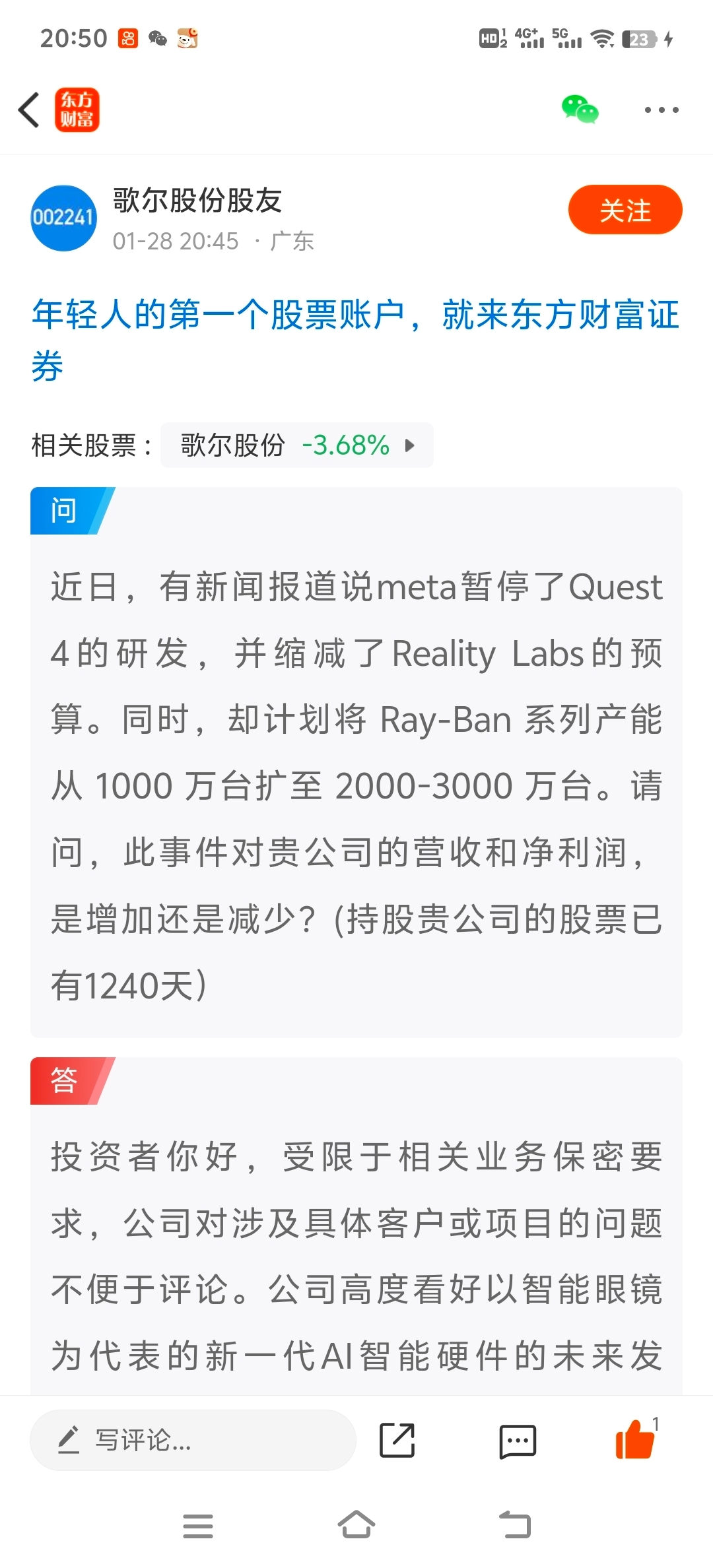 $歌尔股份(SZ002241)$