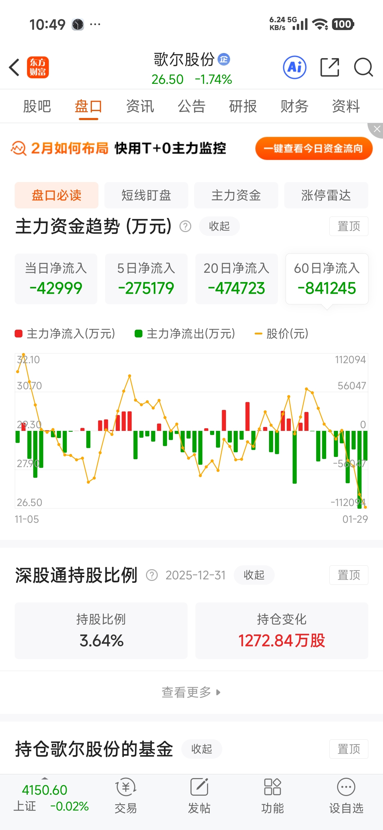 主力60天流出84亿才跌十几个点好强啊有这么多主力在里面是好股