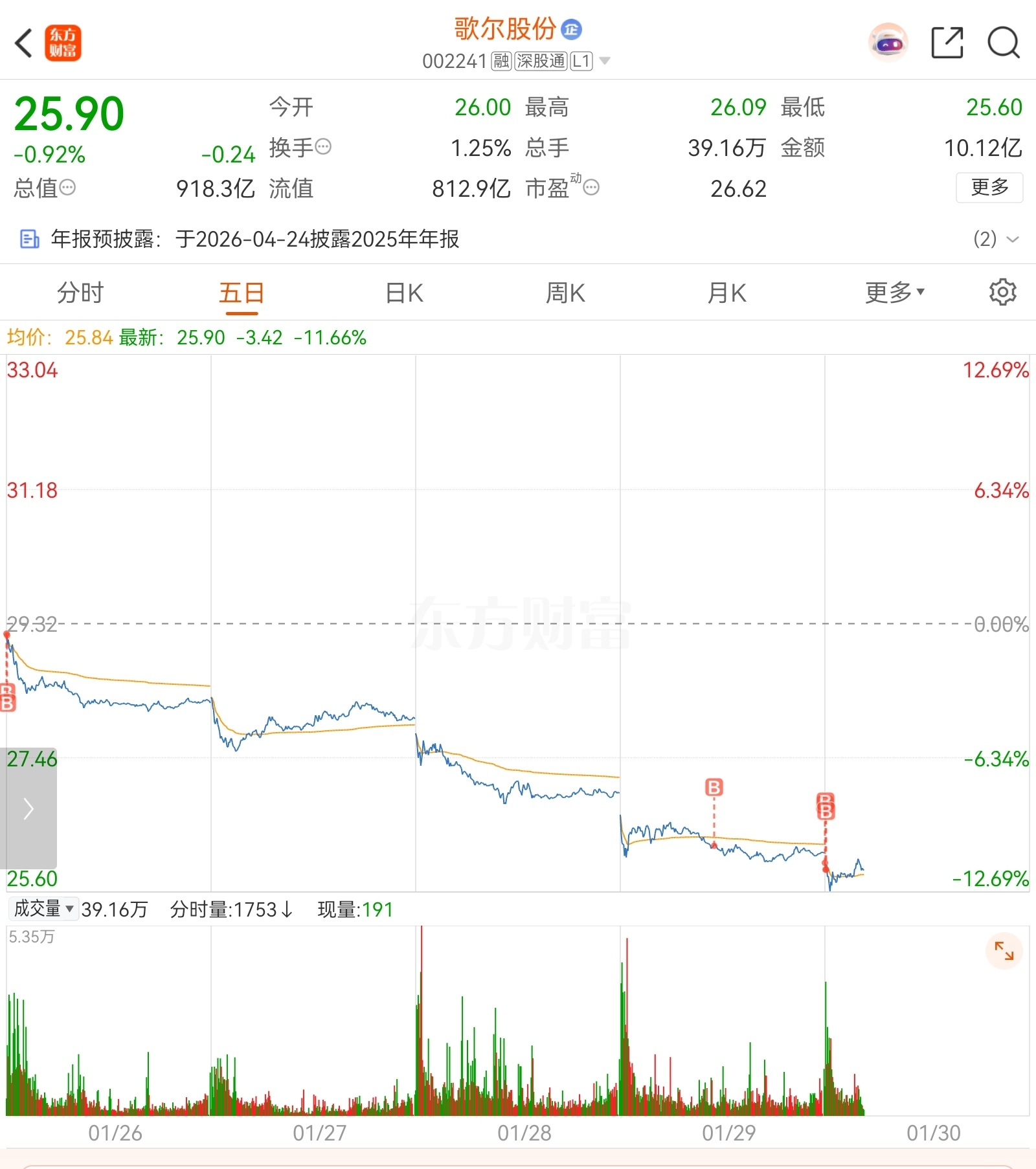 $歌尔股份(SZ002241)$ 本周两天加仓,中和下成本。消费电子板块都在调整,歌尔融资余额不减,俺就不走,熬走小散