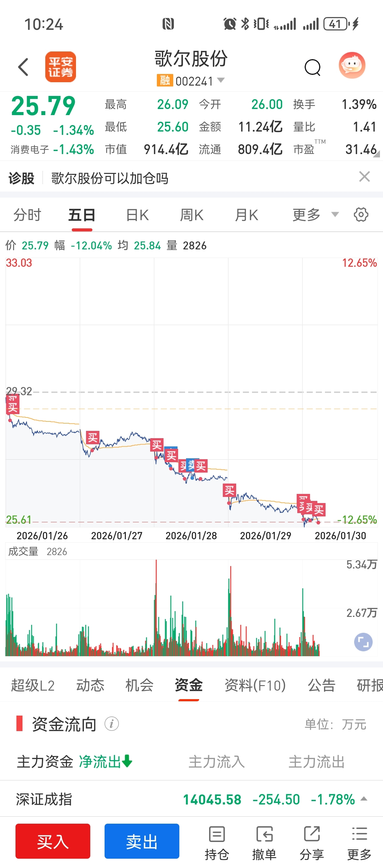 $歌尔股份(SZ002241)$ 加了四次,看好你,加油