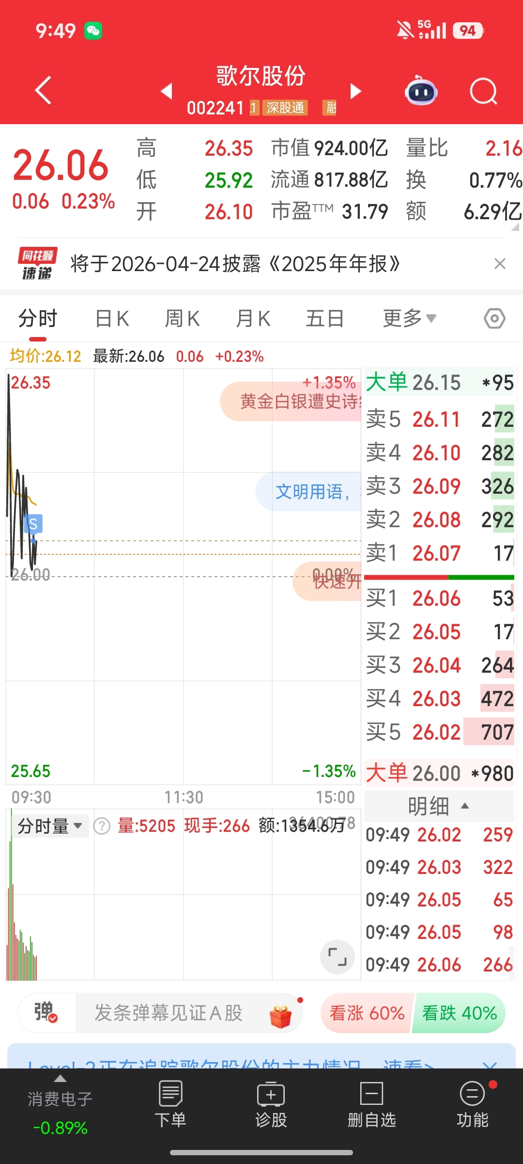 $歌尔股份(SZ002241)$ 清仓了,害怕雷