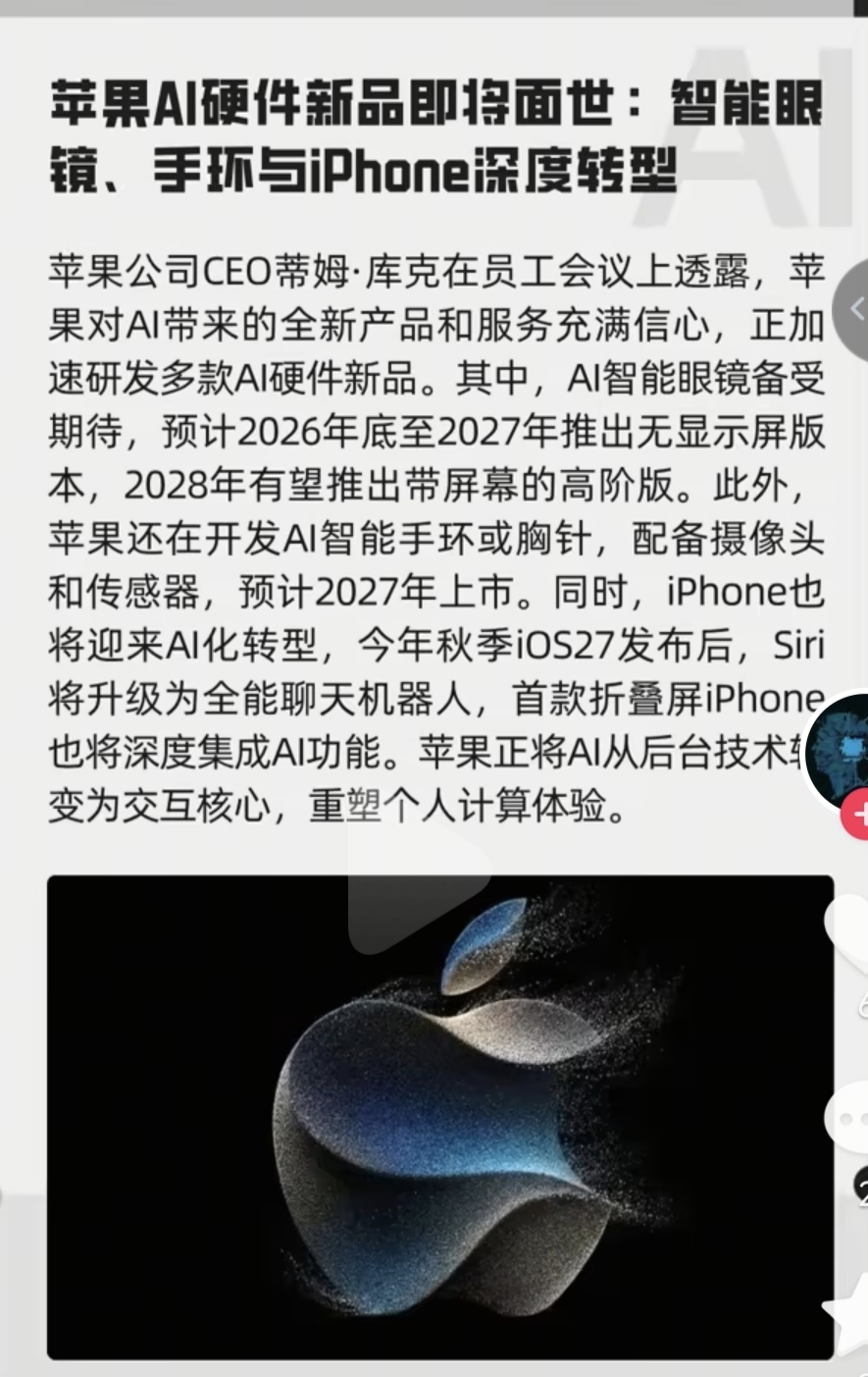 $歌尔股份(SZ002241)$ 苹果ai眼镜来了