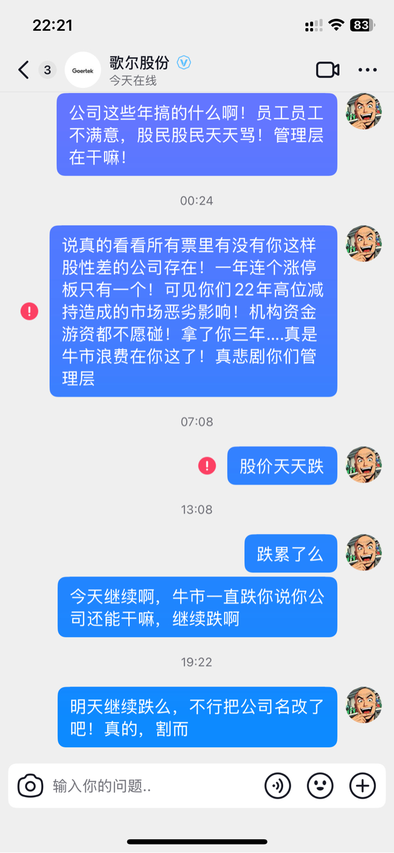 $歌尔股份(SZ002241)$ 天天在他抖音私信骂骂他!不然心里不舒服