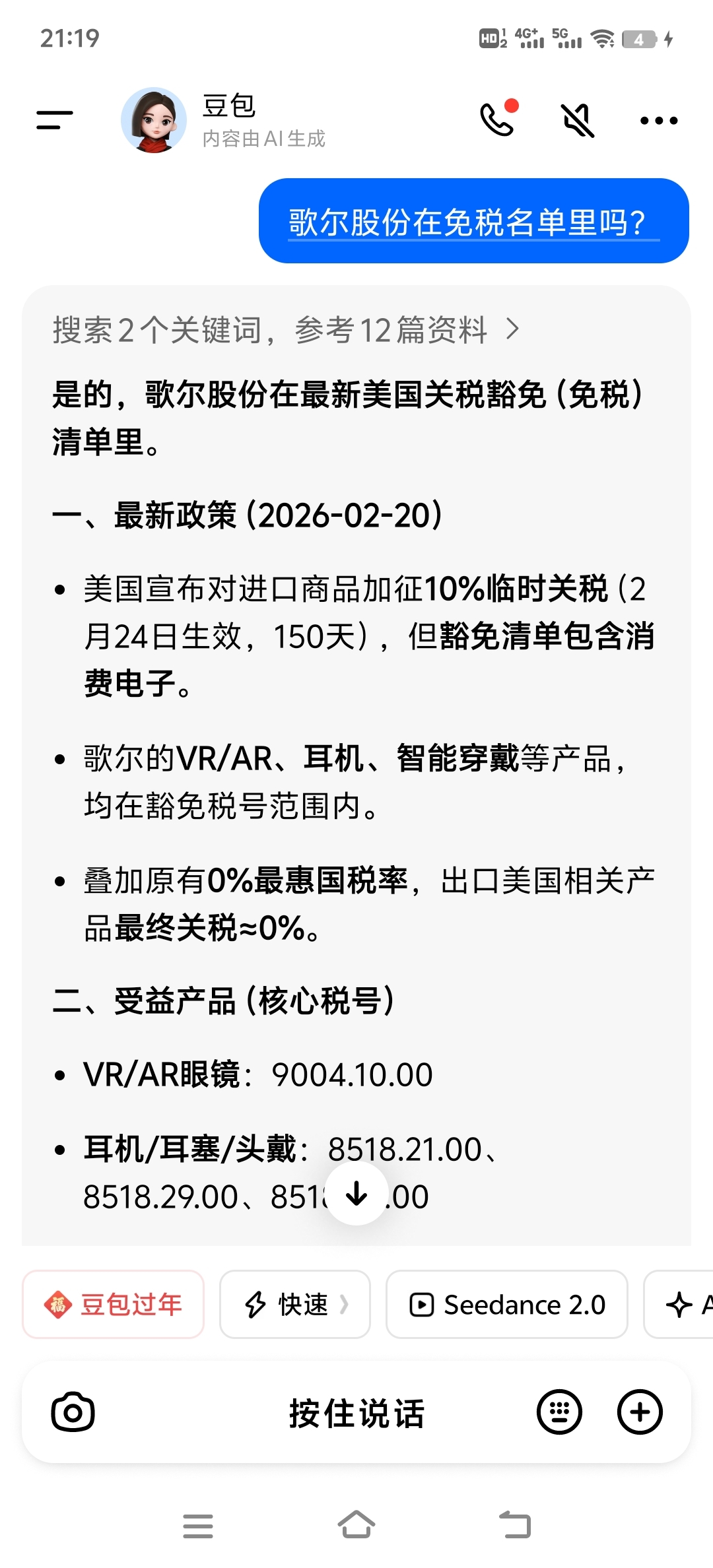 $歌尔股份(SZ002241)$ 歌尔股份在免税名单里