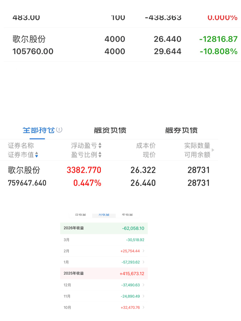 $歌尔股份(SZ002241)$ 歌尔股份跌了我三个月,2月没跌,三月又开始跌了,我不怕你跌,今天继续加仓,看你能跌到多少钱,我就耗死你