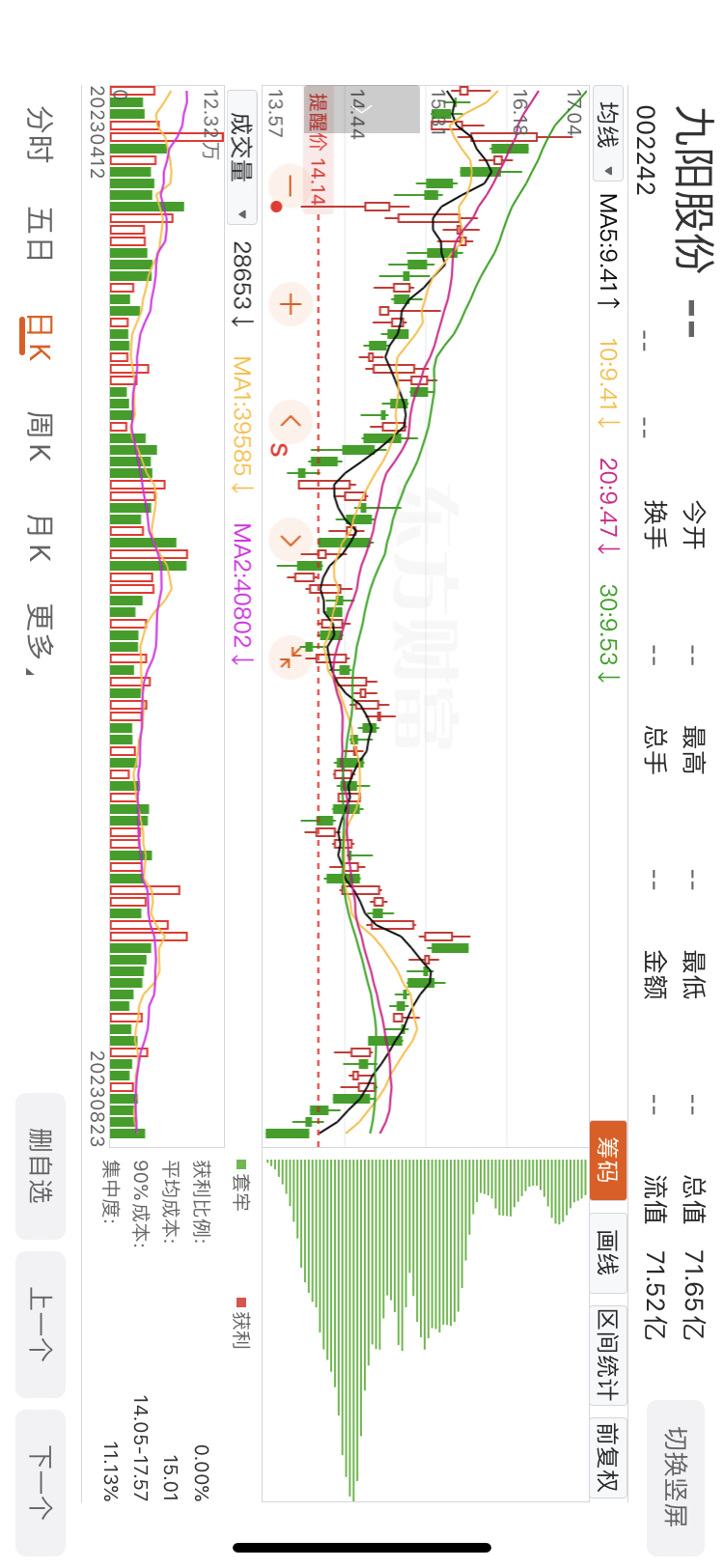 $九阳股份(SZ002242)$ 14.14元支撑守住了4次,第5次失守后股价一落千丈,目前从最低位反弹至9元多,令人唏嘘
