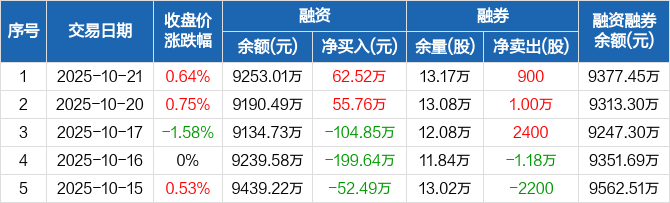 九阳股份:融资净买入62.52万元,融资余额9253.01万元(10-21)