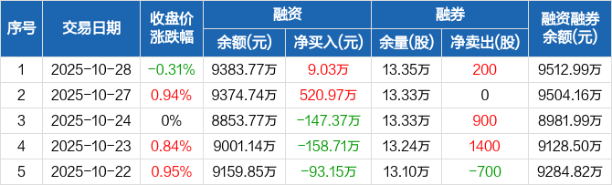 九阳股份:融资净买入9.03万元,融资余额9383.77万元(10-28)