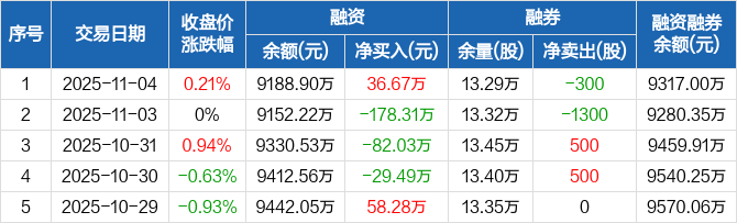 九阳股份:融资净买入36.67万元,融资余额9188.9万元(11-04)