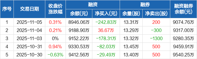 九阳股份:融资净偿还242.83万元,融资余额8946.06万元(11-05)