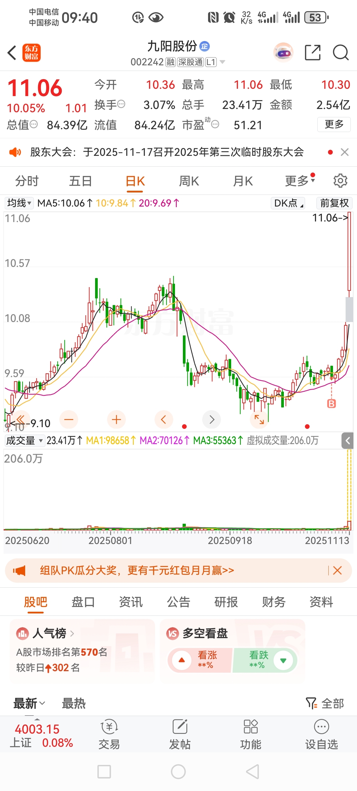 $九阳股份(SZ002242)$ 在这买的 不会被套吧
