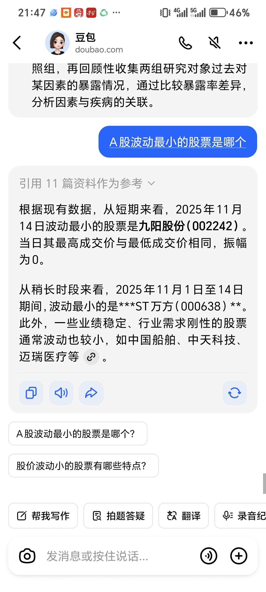 目前A股波动最小的股票就是你啦。