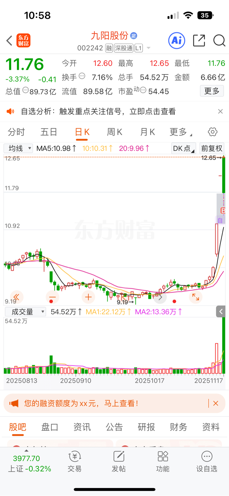$九阳股份(SZ002242)$ 先交个学费,板进来的