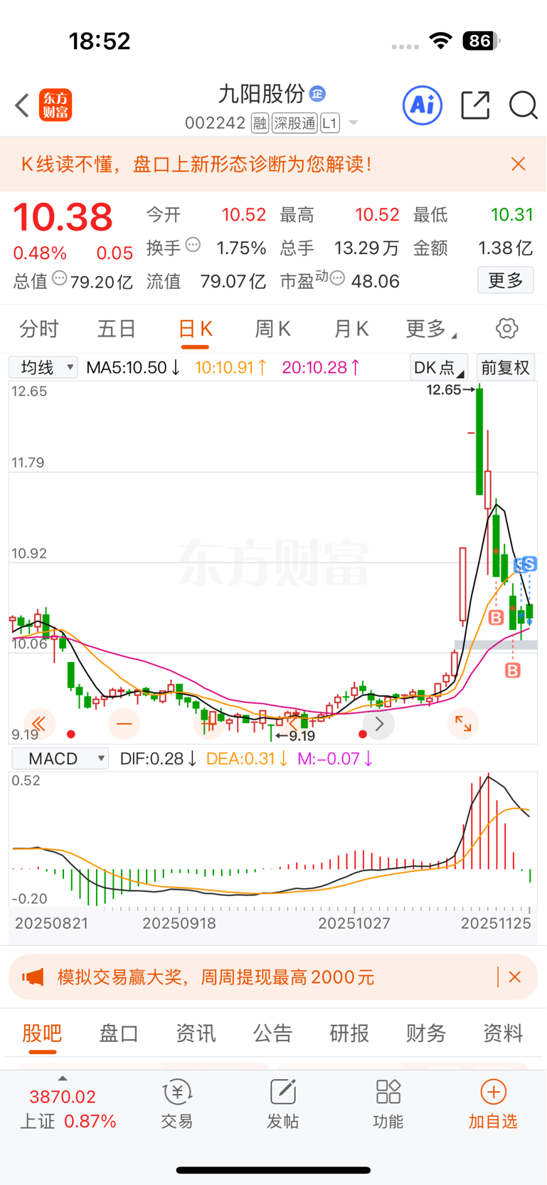 $九阳股份(SZ002242)$ 割肉割肉