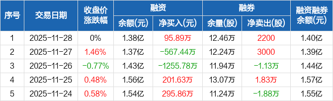 九阳股份:融资净买入95.89万元,融资余额1.38亿元(11-28)