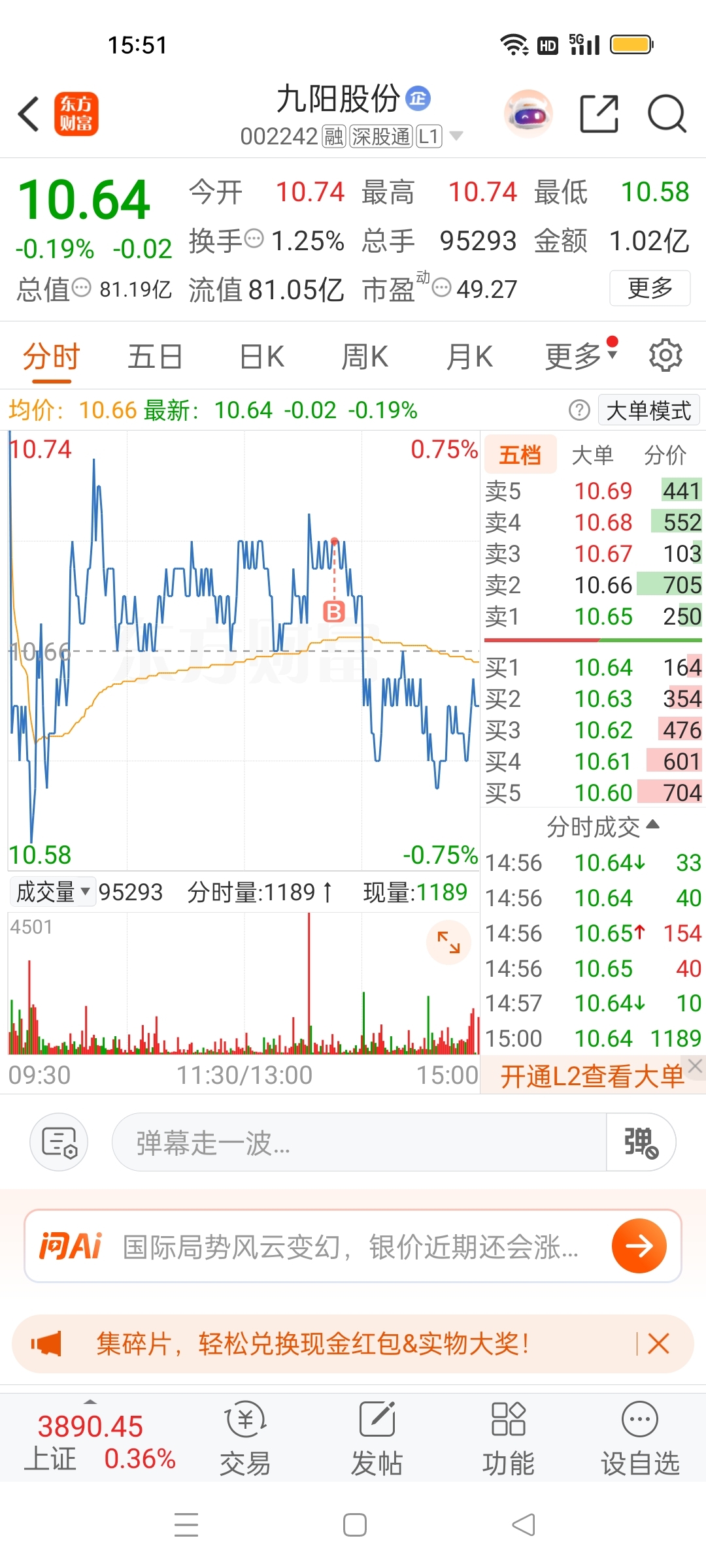 $九阳股份(SZ002242)$ 几千只上涨,这还套人,没天理了