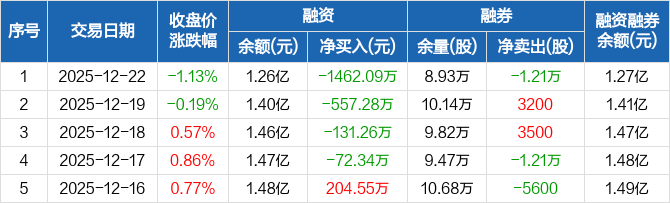 九阳股份:连续4日融资净偿还累计2222.97万元(12-22)