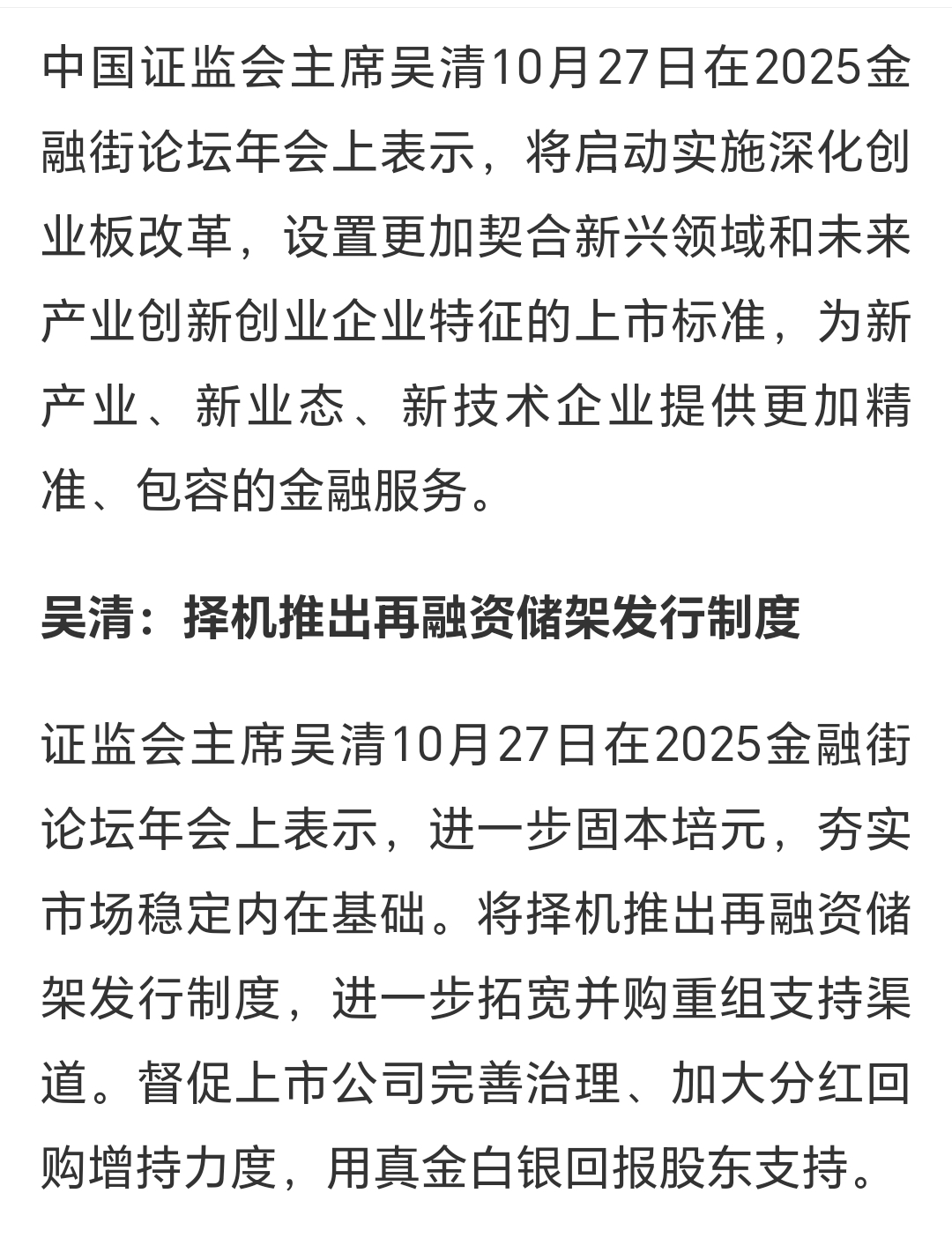$力合科创(SZ002243)$ 结合深圳新举措,尤其利好深圳本地创投公司:证监会将启动实施深化创业板改革,放宽上市包容标准,支持并购重组,截图如下