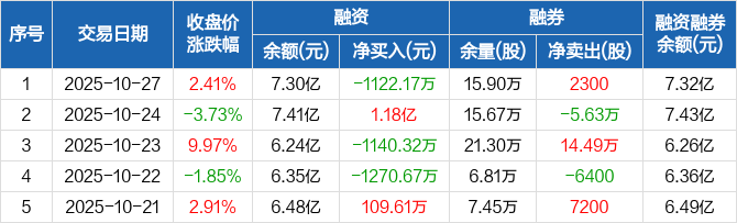 力合科创:融资净偿还1122.17万元,融资余额7.3亿元(10-27)