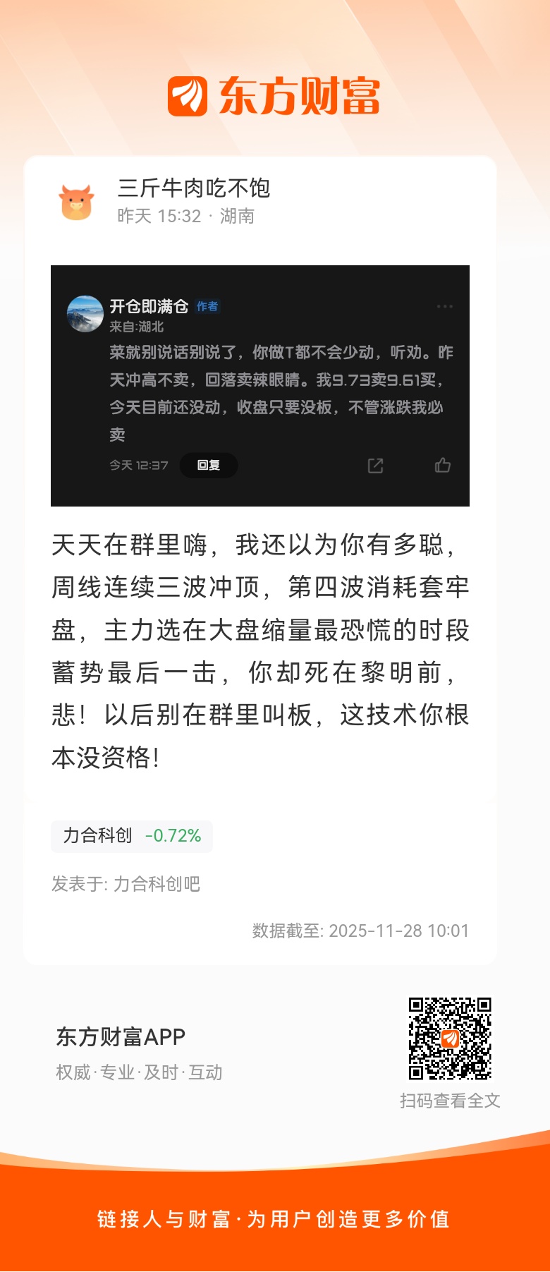 温馨提示: 1.根据《证券法》规定,禁止编造、传播虚假信息或者误导性信息,扰乱证券市场;2.用户在本社区发表的所有资料、言论等仅代表个人观点,与本网站立场无关,不对您构成任何投资建议。用户应基于自己的独立判断,自行决定证券投资并承担相应风险。《东方财富社区管理规定》