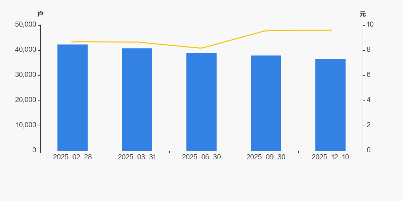2025年2月28日至今,公司股东户数显著下降,区间跌幅为13.50%。2025年2月28日至2025年12月10日区间股价上涨10.45%。