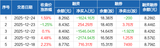 力合科创:融资净偿还1624.16万元,融资余额8.26亿元(12-24)