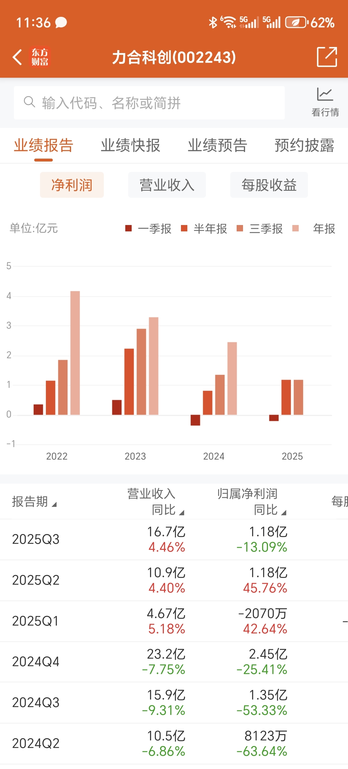 $力合科创(SZ002243)$ 大盘此轮从3800涨到近4200力合才涨了多少大家自己算算。小爷实在看下去了。多几句嘴,大家自己领悟不涨的原因。业绩逐年下降问题大。