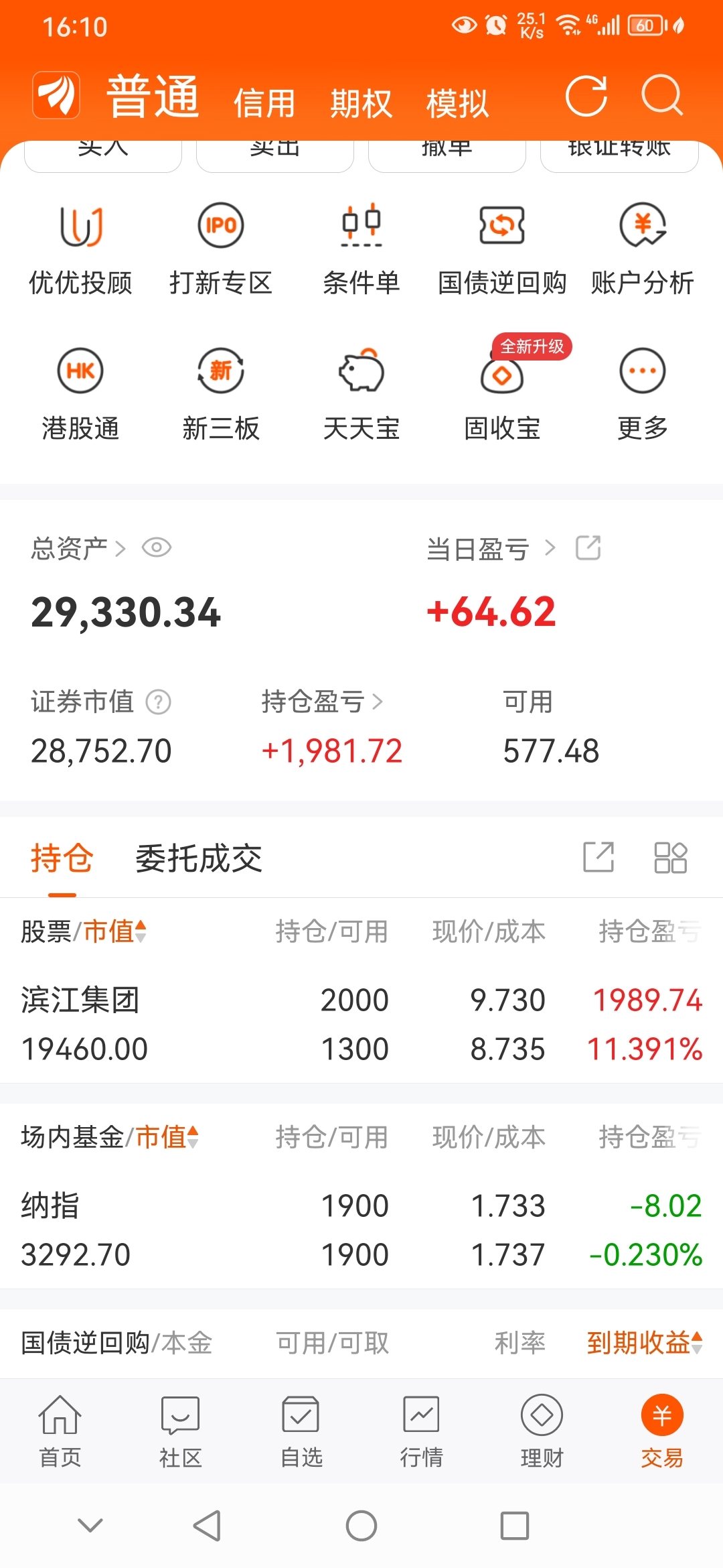 目前你是我赚钱最多的个股,希望你可以带我回本+赚钱。看好你,滨江集团,优质房产股